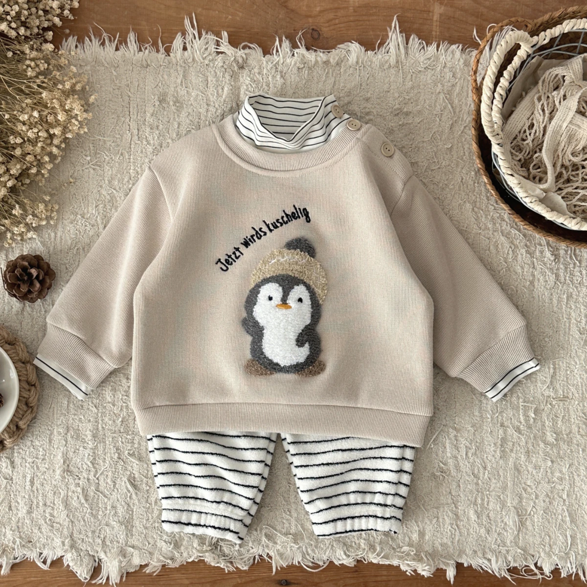 Size 6-9M length: 32cm Chest circumference: 66cm Waist:39cm Pants length: 39cm Hip circumference: 66cm Suitable for 6-9 months