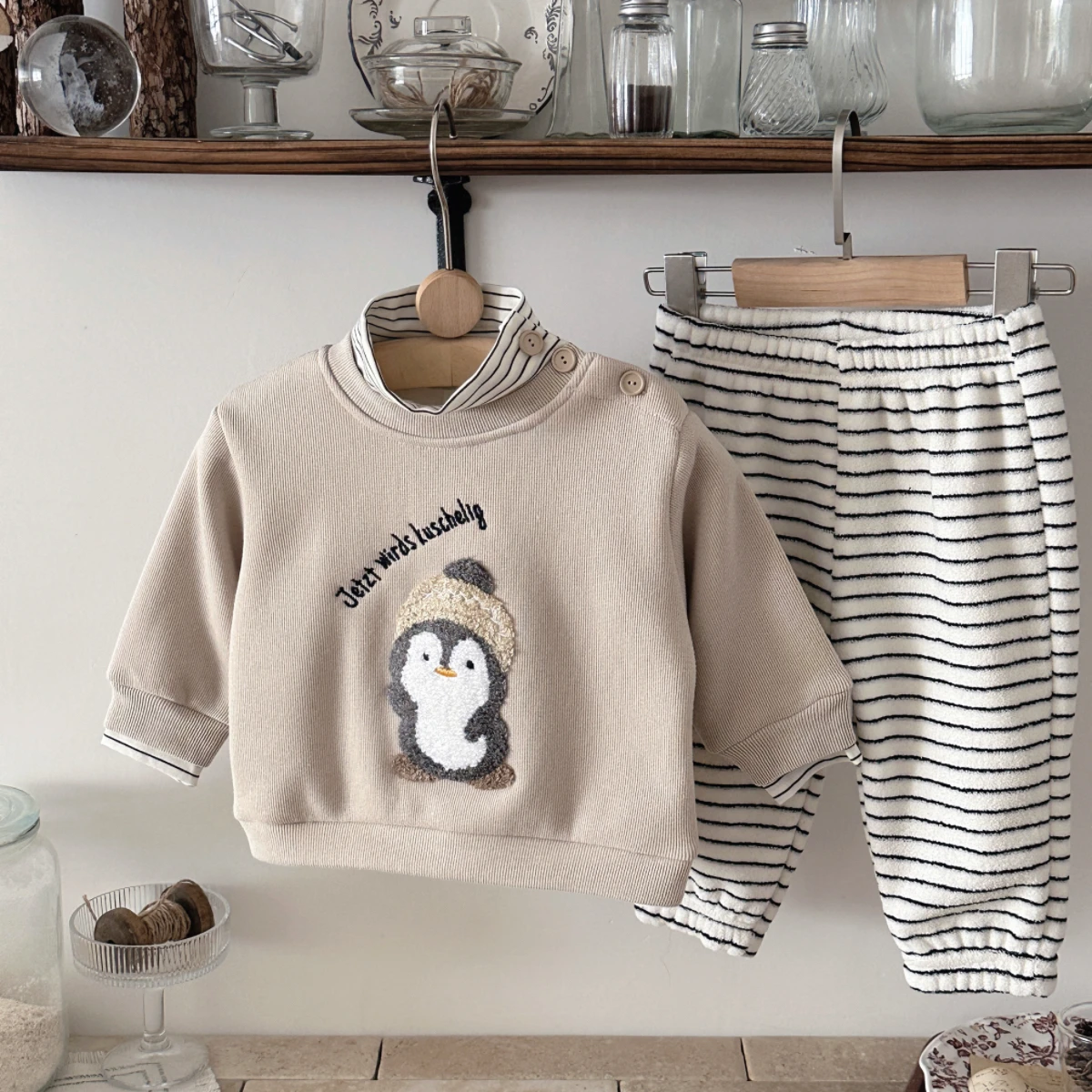 Size 12-18M length: 36cm Chest circumference: 70cm Waist:41cm Pants length: 46cm Hip circumference: 70cm Suitable for 12-18 months